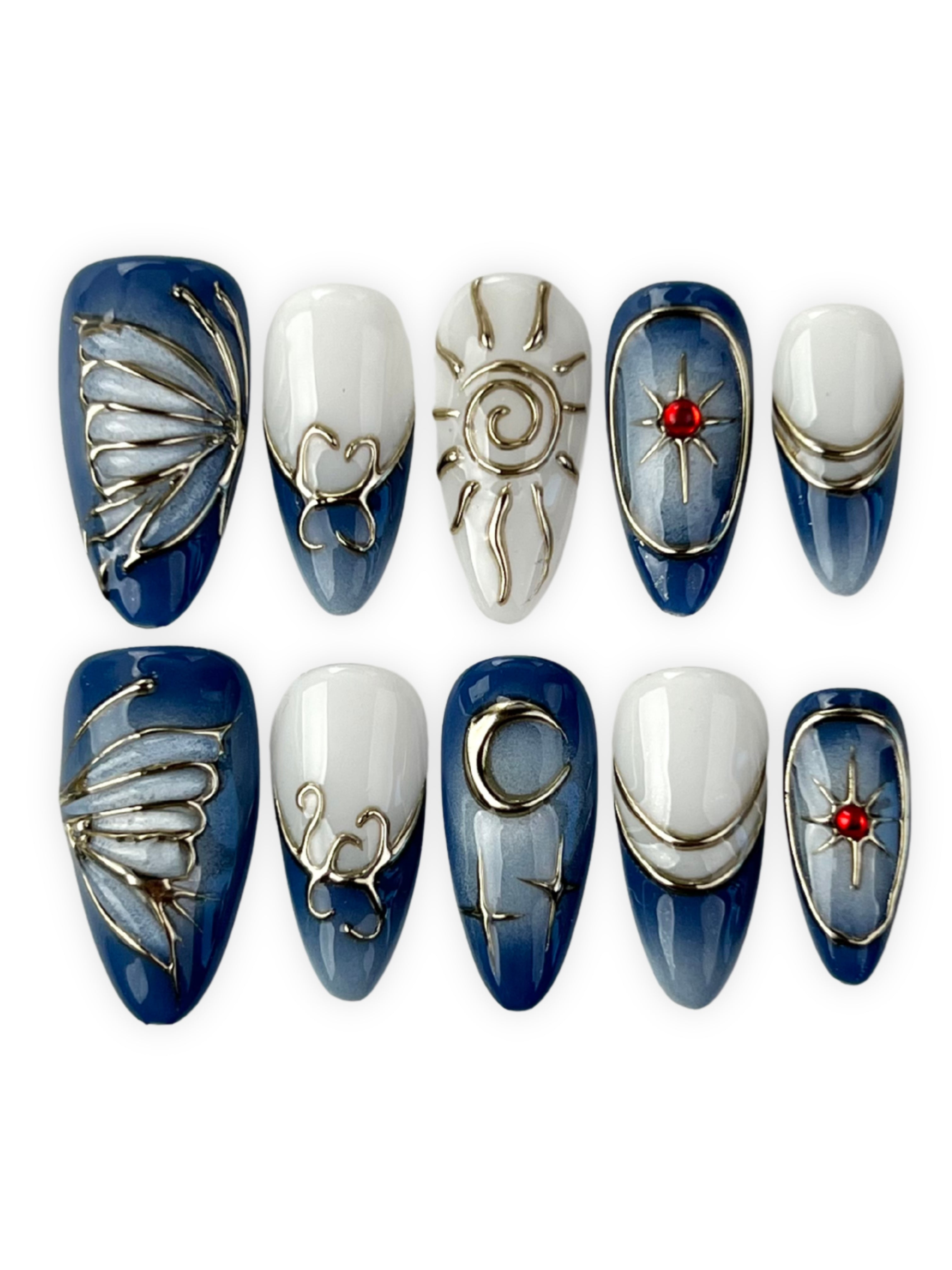 INCLUDED- 1 NAIL GLUE- 1 SHEET STICKY TABS- 1 NAIL FILE- 1 ALCOHOL WIPE- 1 CUTICLE TOOLSIZINGStyle runs true to size.MEASURMENT METHODAPPLICATION-STEP 1: Wash hands and dry completely. Buff your...